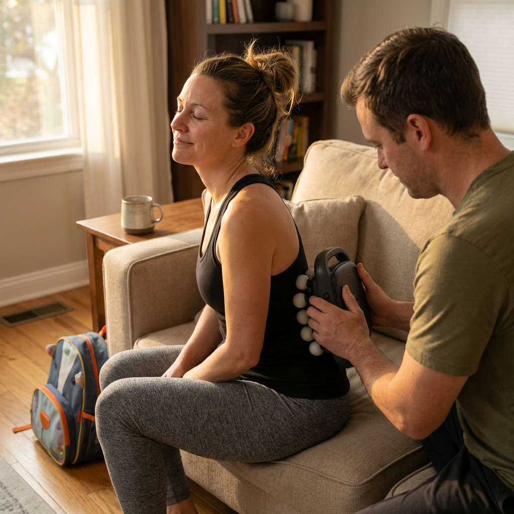 Close laptop. 60 seconds on neck and shoulders. Bed. No app. No protocol. First time in years I'm not starting over every morning.